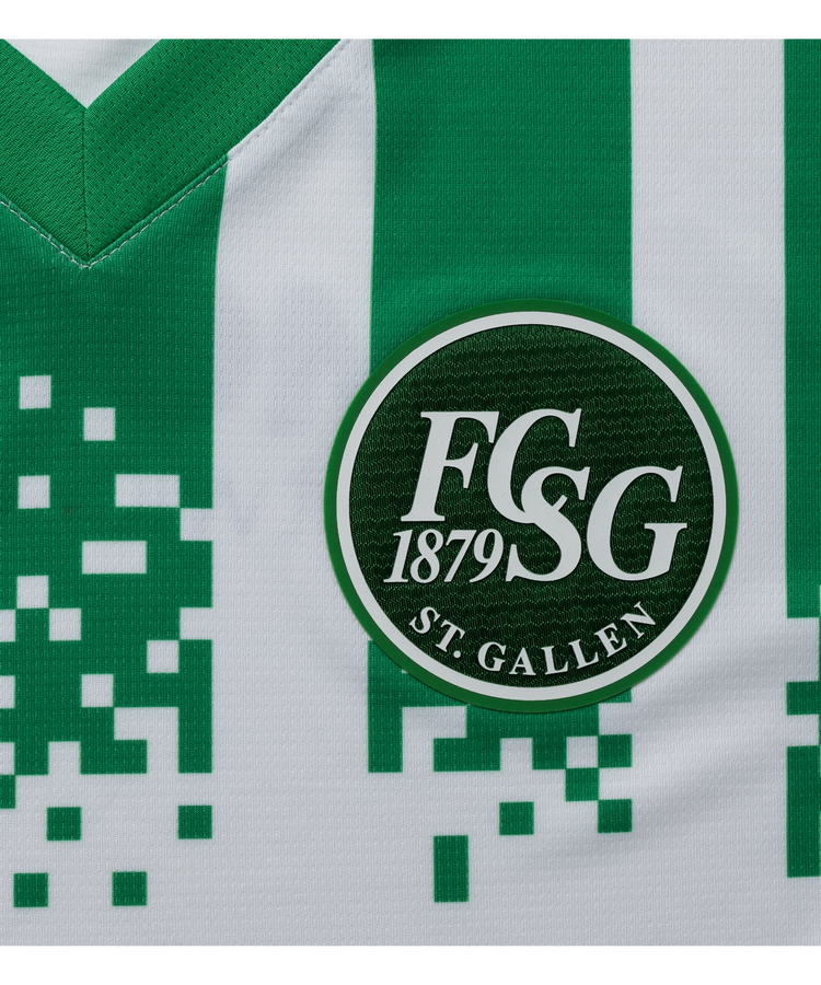 Wir alle sind der FCSG! Das Trikot der Saison 2024/25 glänzt mit verschiedenen grünen Pixelstreifen auf weissem Grund. Die Pixel symbolisieren Bausteine - unsere Fans sind ein zentraler Baustein. Jeder von uns trägt seinen kleinen Teil bei, so bilden wir in unserer Vielfalt eine Einheit, die Grosses erreichen kann. Hol dir jetzt dein Trikot und werde Teil unserer grossen Geschichte!