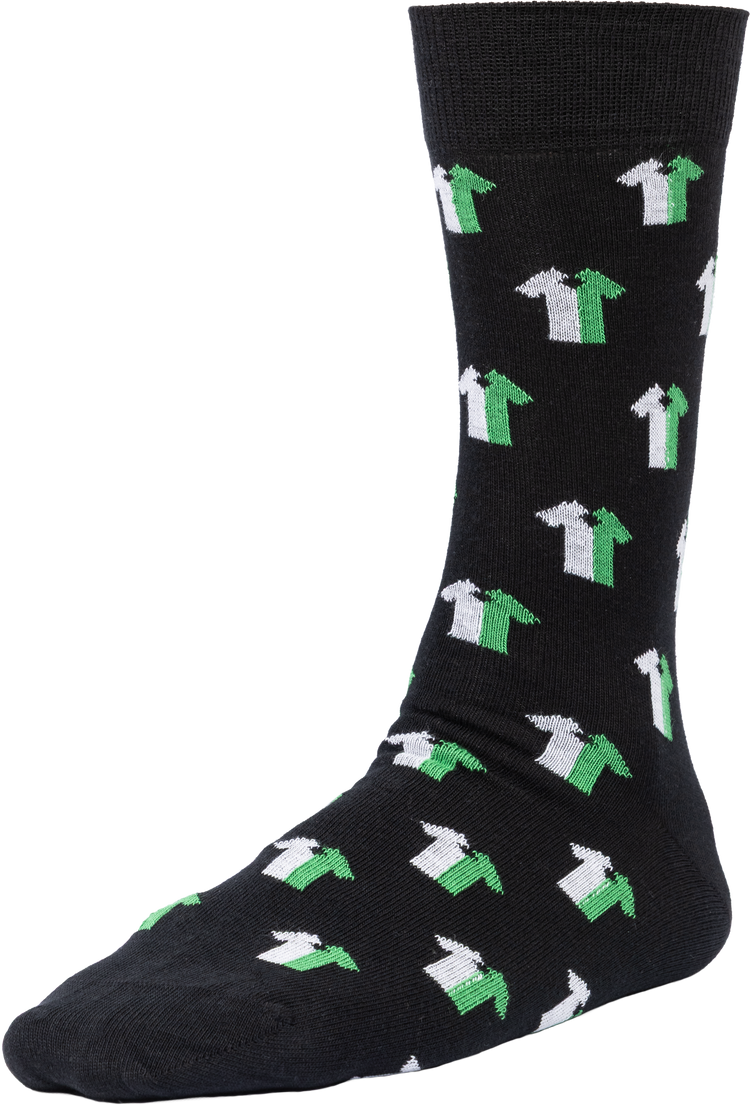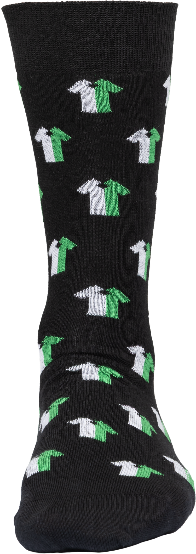 Fussballtradition von Kopf bis Fuss! Die angenehm weichen, schwarzen Socken aus Baumwolle fühlen sich nicht nur gut an, sie zeigen auch einige klassische FCSG-Trikots.